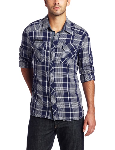 J.C. Rags Men's Herringbone Check Woven Shirt, Varsity Blue, X-Large Review