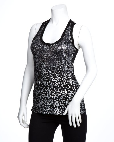 Sure to be an effortless party favorite, this 2b sequin top features leopard print and racerback cut. Center back to hem 25".