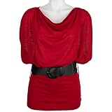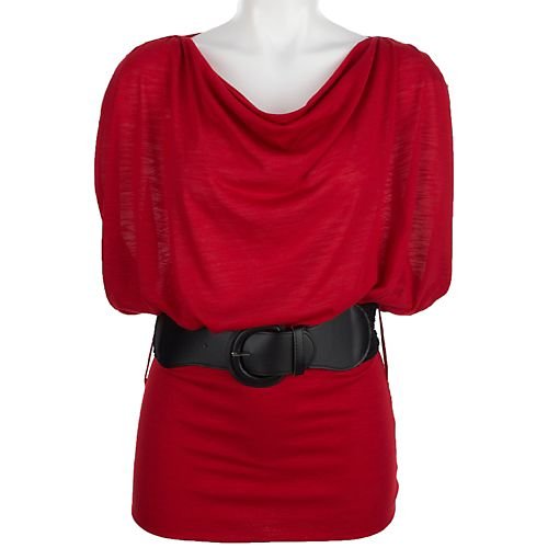 TREND: Belt it up. Lightweight and fashionable, this drape neck top features cap sleeves, lightweight slub knit, elastic waist and a wide crochet belt. Polyester. Rayon.